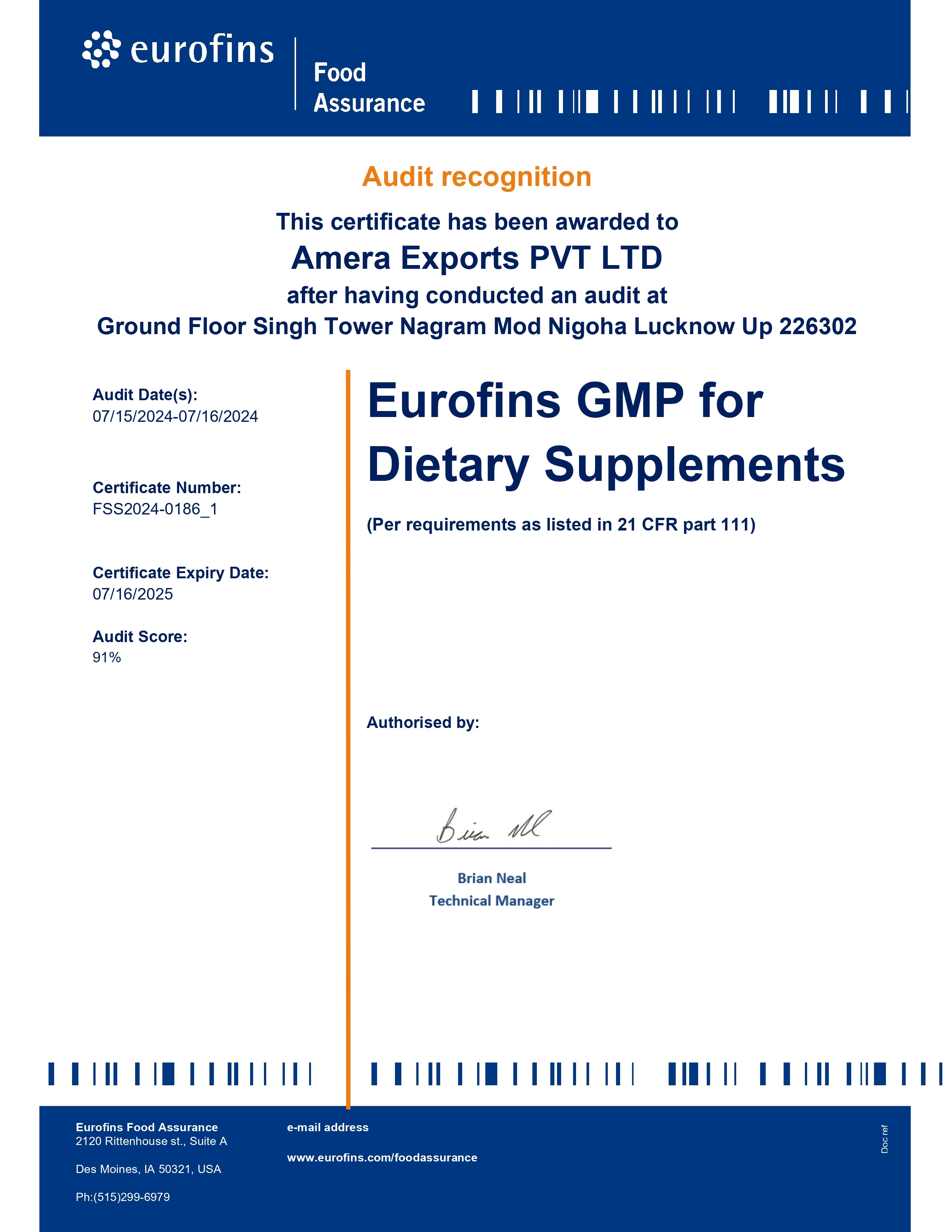 Amera Export stands apart as India's No.1 exporter of dietary supplements, trusted by top brands in the USA and Europe. We utilize cutting-edge technology and adhere to strict quality standards, ensuring innovative and reliable manufacturing. Our experienced team, rigorous quality control, and customer-centric approach make us the partner of choice for tailored, world-class supplement solutions, committed to excellence and innovation.